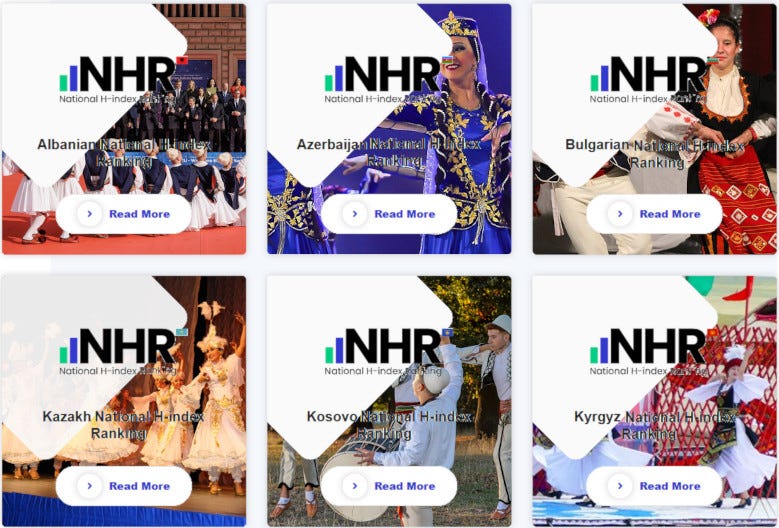 Many academic institutions now live or die by their citation status. In fact, as shown by the comical superposition of the h-index over local dances in my parody at the start, entire nations have been ranked on their ‘h-index’.