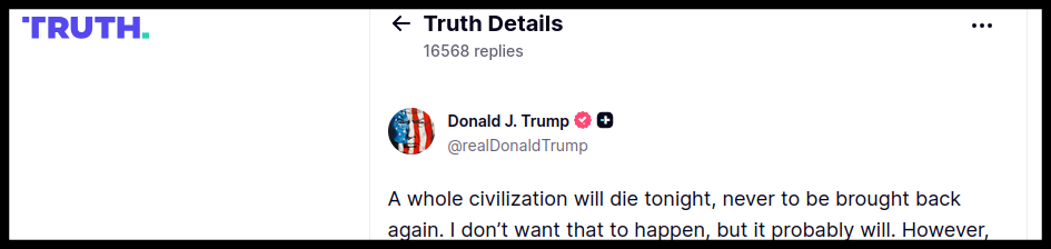 Of course Donald Trump is a genocidal fuckwit. He has both said and shown us that he is. Consider the above tweet by him on his festering Truth Social. If that’s not threatening genocide, what is?