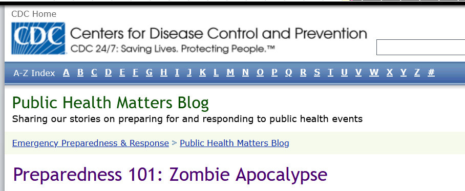 In 2011, when the CDC put up its Zombie Apocalypse webpage the website crashed, unable to cope with the surge in public interest. The page is now taken down. Fortunately, a copy was mummified on the Wayback Machine. The former CDC Public Health Matters Blog informs us that: