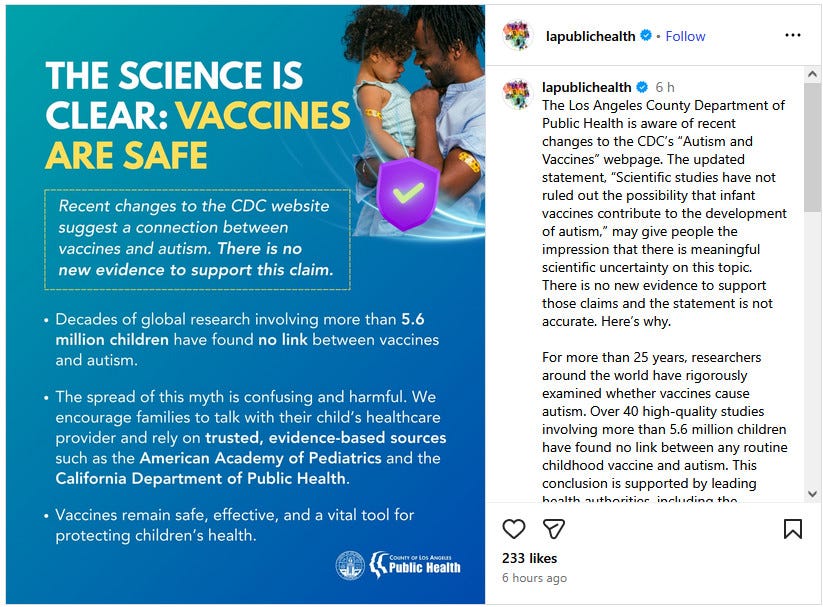 The CDC is no longer a reliable source of information. We do however still have a multiplicity of reliable people like Your Local Epidemiologist (Katelyn Jetelina, pictured above), who has recently lamented the “flatlining of part of the CDC”.6 It’s likely that the World Health Organisation, its Vaccine Safety Net, the European Vaccine Information Portal, the 67,000 pediatricians at The American Academy of Pediatrics and the Mayo Clinic will continue to provide reliable vaccine information for some time yet.