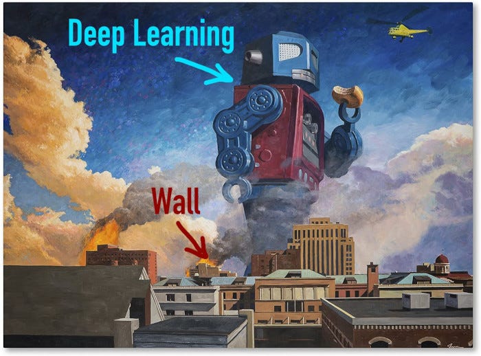 We’ve already found that ‘general purpose methods that just scale’ is shameless extrapolation. As we’ve seen with GPT5, despite chip + training costs some estimate at US$ ~5 billion, scaling just hasn’t worked. People who bet the house on LLMs are suddenly finding that Gary Marcus was right. LLMs plateau out, demanding exponentially more data.7 I guess that’s scaling, of a sort :)